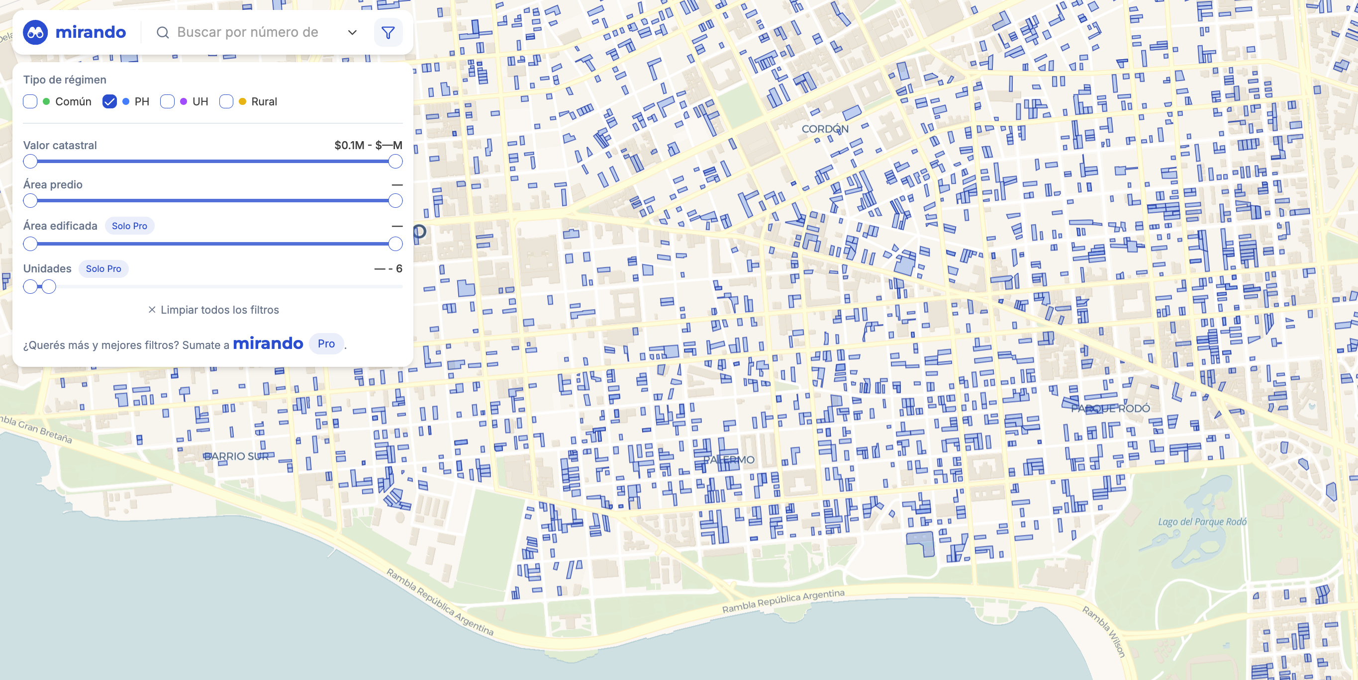 Algunos filtros como área edificada y cantidad de unidades están disponibles exclusivamente para usuarios Pro. Si trabajás en el sector inmobiliario o necesitás análisis más detallados, considerá suscribirte a Mirando Pro para desbloquear todas las funcionalidades.